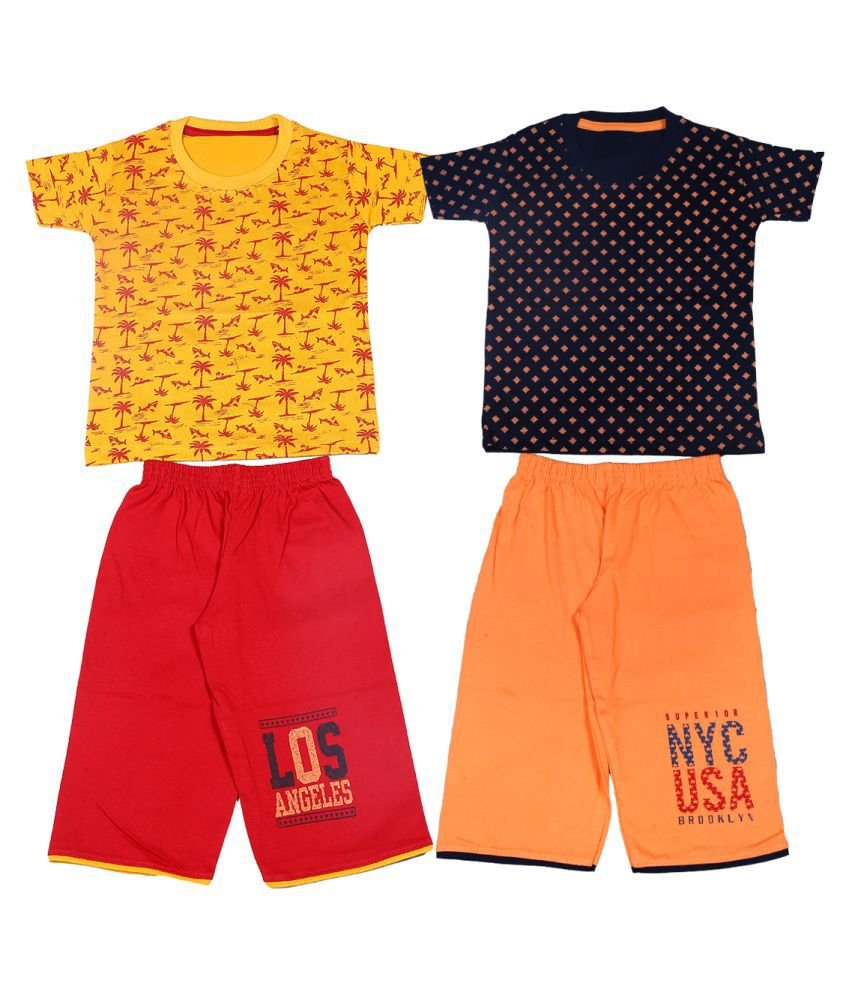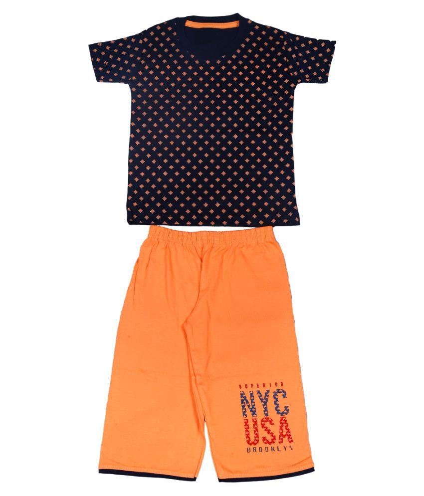 1ly Garments, Boys Round Neck T-Shirt with Three Fourth Shorts